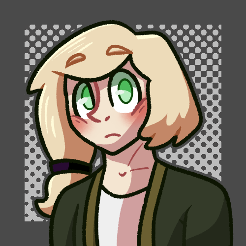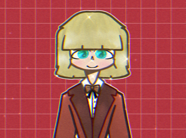 she is very cool and i love her :3i am not grat at backgrounds but the little checker/square thing really cute! (even tho it's a bit too bathroom floorcore...)