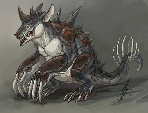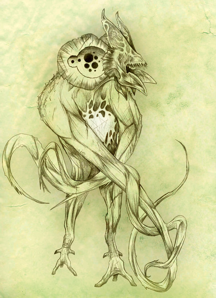 Интересный концепт) Думаю, то, что у него такая вроде бы непропорциональна голова, придаёт ему иррациональности, а значит и чувство страха. Вообщем, он действительно подошёл бы как монстр к к какой-нибудь компьютерной игре)
