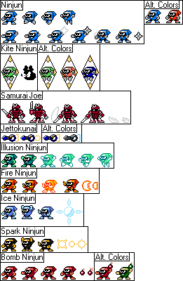 (Art Man, Neon Man, Industry Man, Gear Man and Sand Man's eyes: Made by [link] )(Original Roll heads for Night Woman and Foam Woman: Made by Capcom, ripped by Sprites Inc)