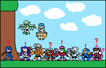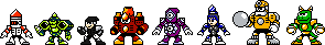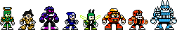 Here's my vision of what SamJamBamDam's Robot Masters would look like if I made their designs, as well as Night Woman (who I let SamJamBamDam use for his fangame) and Foam Woman (since I wasn't too sure on what Flag Man should look like). I hope he likes this pic! ^_^