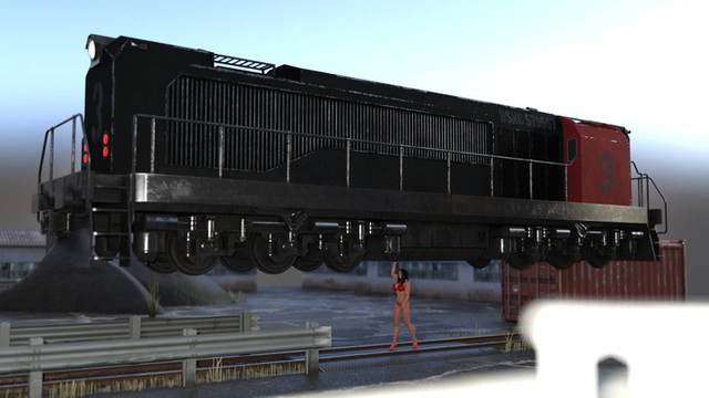 Ehm, well back to the story. She finally set free the locomotive and then used her right hand to lift it up like a toy. Now you understand how hot it was there... 35 degree celsius and Hitomi lifting a train? I was about to pass out any second. Luckily I've had enough stamina to take two quick shoots.