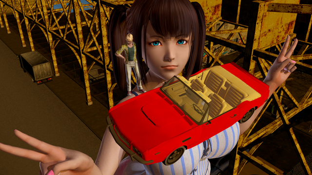 There was an old train locomotive. It was burried under tons of metal, but Hitomi was unstopable! She twisted cars and metal plates like they were hot cream! I was scared that someone might hear that rumble, but luckily it was empty and Hitomi said she could hear anyones movements in this Universe. I mean it's not something I can imagine, but I just want to let you know... whatever you do.. Hitomi is watching! O.O
