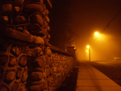 This is sweet... I love the lights in the fog behind... and then the focus of the clock. Love it!