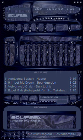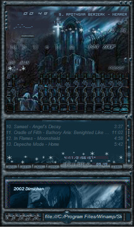 Made to fit the music I listen to and inspired by a friends lyrics, maybe not the best skin techincally I've done, but still my favorite.Alternate main file included for those who prefer to use AVS, and alternate 16 bit color mikro tray icon file included for those not on win XP, see readme file for instructions.