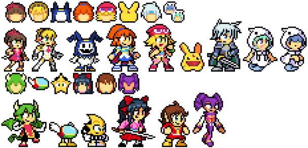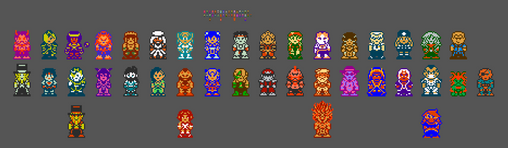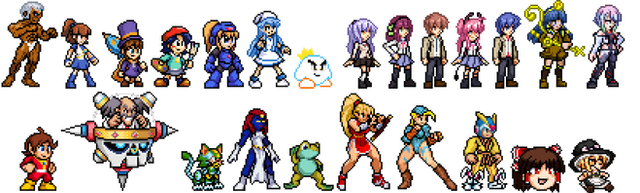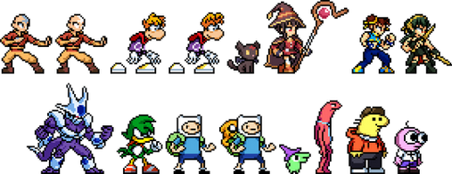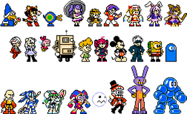 A bunch of amiibo style 8-bit sprites, both official ones and some made-up ones. From all sorts of games, non-games, and a few OCs. This was mainly worked on by me and some others in a Discord a couple years back. From people like geno2925 who initially began this with her Mega Man amiibo sprite that was used in Mega Man 8-bit Deathmatch v5. To others like peggdraws , BonerMang , and FTX6004 with characters from those 3 and more such as BlazeYeager and Tristzana892 .There are some credits I am forgetting, granted not all of the people have Discord. Still, I would list off the following amiibo but as you can probably see... there's a ton! See if you can spot who is who.