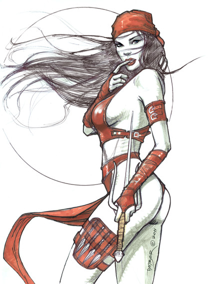 Old sketch (2010) of Elektrapencil , ink pen and red and black markers on paper