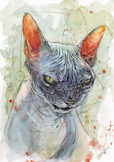 Study inspired at the fabulous cats photographs ofMixed media (acrylic colours and coloured pencils) on paper