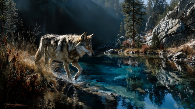 amazing! I love wolves! This is beautiful and the water is super realistic!