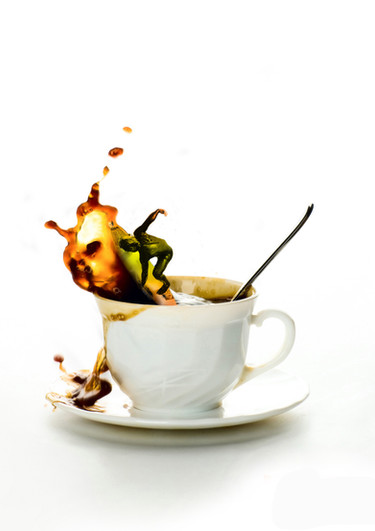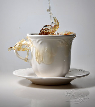 Cool capture. The splash behind the cup almost looks like something more solid that were pre made and then placed there. Buut the little drop in the right end of the picture tells me this is all liquid