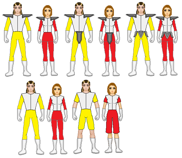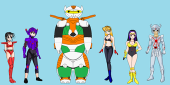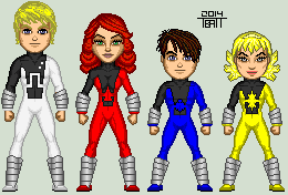 This is a picture of a group from my Marvel/Power Raners/TMNT fanfiction story world.This is a Power Pack, Katie, Alex, Julie and Jack Power. They are the children of James Power, a renowned scientist and inventor. When one of her father's inventions accidentally transported the alien known as Aelfyre Whitemane, a member of the humanoid Equine Kymellian race into their own basement when the device was accidentally activated. The presence of Whitemane attracted the attention of a race known as the Z'nrx (mispronounced as Snarks by humans), vicious reptilian humanoids who were at war with the Kymellian's, and where tracking Whitemane in order to try and abduct his Super Powers. Mortally wounded in a Snark Ambush, Whitemane passed his powers onto the Powers children before they could steal his powers, granting each sibling one of his Four Fundamental powers, Gravity, Energy, Velocity and Density.