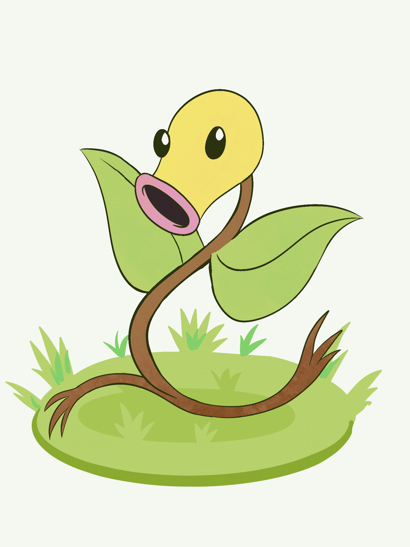 Sometimes I just sketch things to loosen up. Sometimes the sketches look okay enough to clean up, colourize and make into drawings to post.This time it was Bellsprout. I don't know why it's Bellsprout. I did used to watch the Pokemon anime, and Pokemon Silver is one of the few video games I actually played all the way through, but I never had any particular affinity for Bellsprout. I don't think I even caught one. So I don't think there was any reason for me to draw Bellsprout here... other than it's easy to draw.