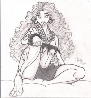 She looks a little african with the flower and the hair.