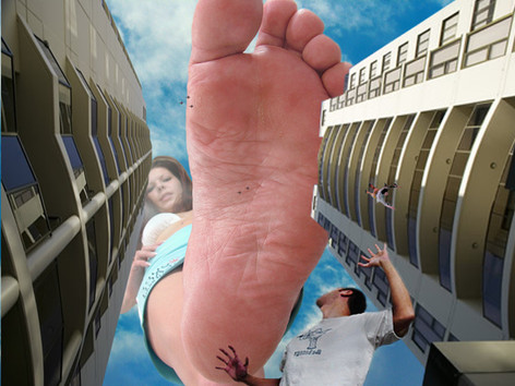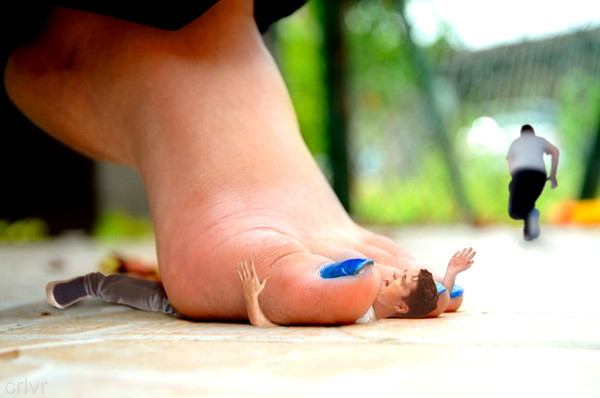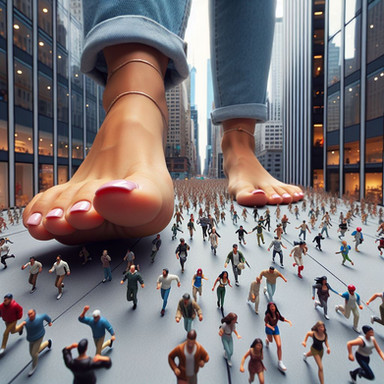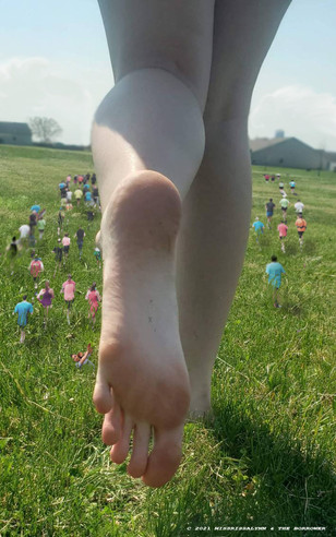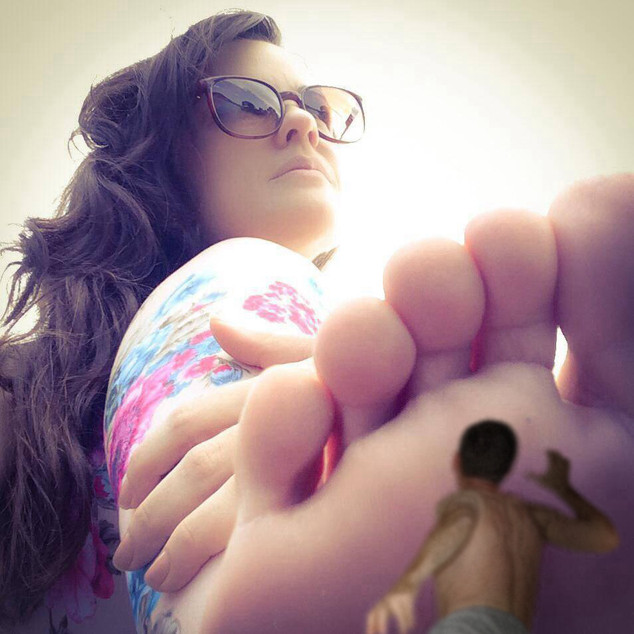 Wow... that foot looks so damn huge and wide! I bet that when her heel touched the floor, the tinies felt a huge earthquake, and they could enjoy a beautiful "last view"