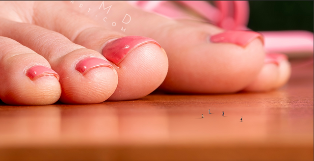 Oh wow, thanks for that! I'm quite the fan of her as well, she's my favorite foot model out there. Her exquisite feet are the perfect playground for shrunken people, right? haha