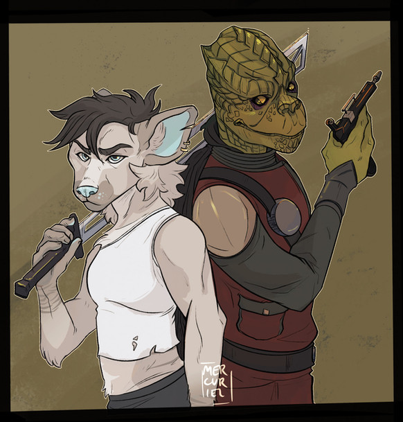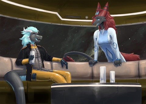 Commission for Fennbothan of a couple of pilots for a tabletop adventure, a Selonian and a Trianii!Related content