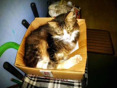 cat "I'm living in a box. I'm living in a cardboard box!" [link]