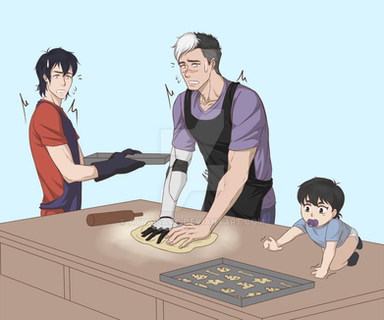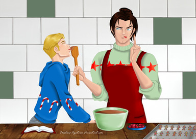 I skipped day 4, here's day 5 "baking together" the background is an edited picture because i dont have time for that shitRelated content