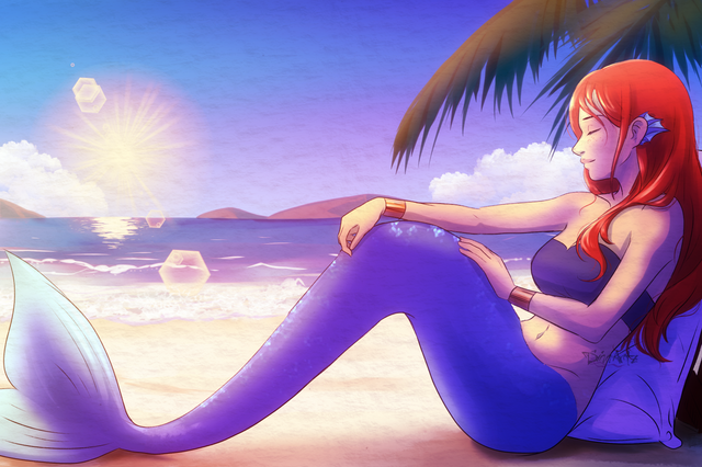 Ooo, she's lovely!! Her red hair compliments her blue tail well!