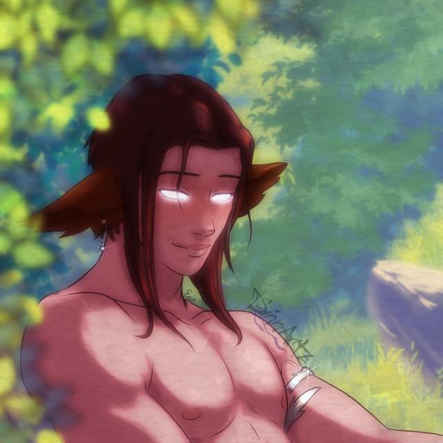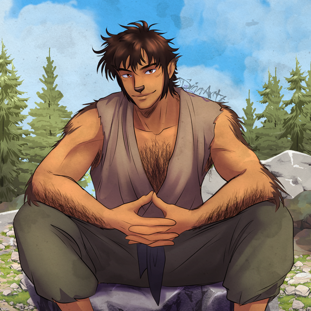 Avin is an aimless wanderer, just moony natured in general. Content to spend his days laying about somewhere watching little critters around him, the swaying of trees and plants or the passing of the night sky. He likes people and being around others but doesn't feel any pressure to stay around them, often following his itchy feet wherever they lead.