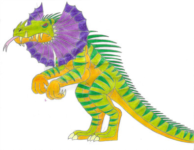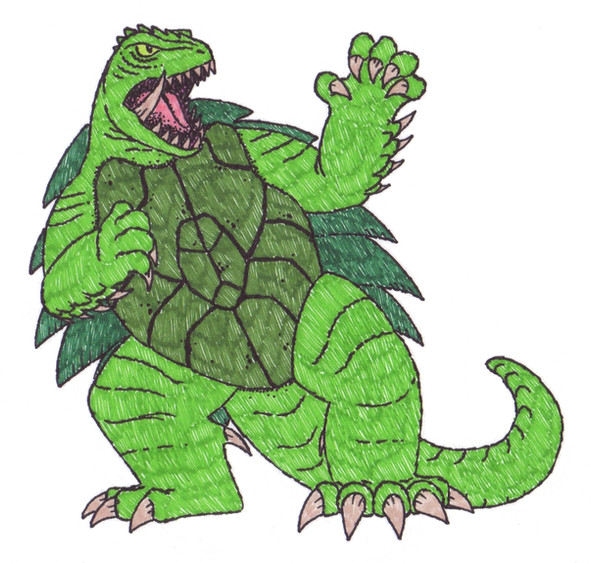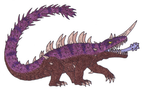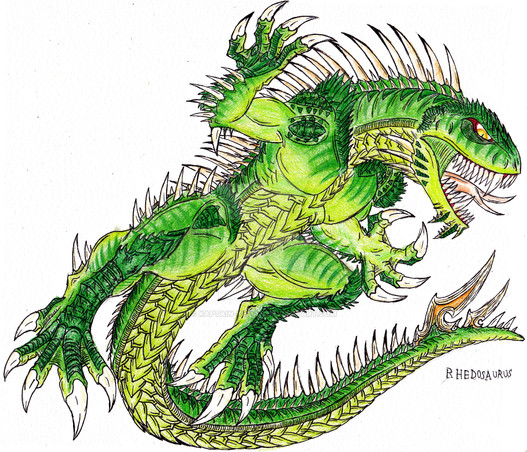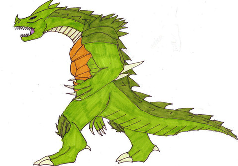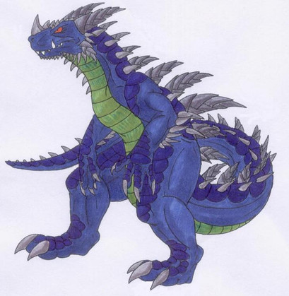 While still a melee fighter, I upped the ante on Varan's abilities. Now Varan has a septic bite akin to a Komodo Dragon, and his many spikes are filled with a deadly poison. Like in Marc Cerasini's "Godzilla 2000", this Varan takes off to glide via internal sacs which are filled with bouyant gas. Whether or not it's oxygen though, I havn't decided.