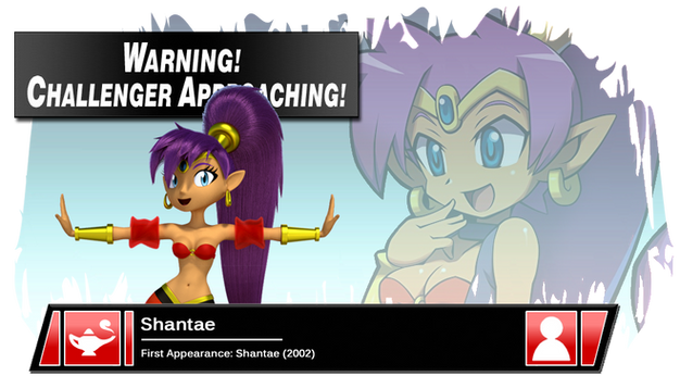 "Shantae is Ret-2-Go"The Half-Genie Hero and Guardian of Scuttle Town has arrived, after tirelessly battling monsters and thwarting off evil doers in her homeland, she finds herself in the midst of Smash and she must fight yet again in order to win the right to get back home.