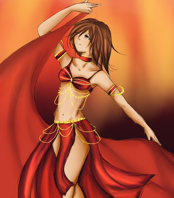 Fem!OC!Romania again.. I do draw other characters (and they are flooding my folders--including Iceland) but ffff I should post my other work.What she is wearing is not a traditional costume of hers. It's a bedlah, ayup worn by belly dancer. Can you see the hinted pairing. :Ua