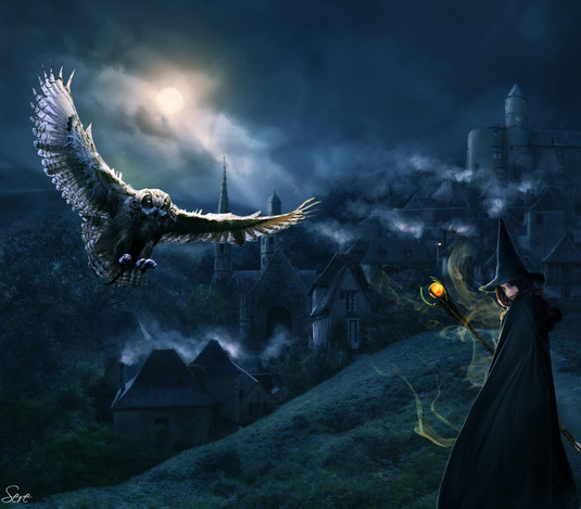 #candle #castle #dark #evening #light #moon #night #owl #candlelight #manipulation #photomanipulation
