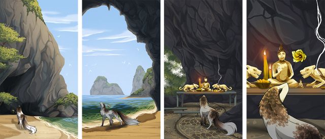 I should've planned it out better in retrospect, there's a contrast issue with its brown rock face against the brown rock bgs, so I slapped on the white outline as a solution towards the end. I probably could've managed with some smarter rendering or sharp highlights but I am genuinely tired of working on this so we'll make it a lesson learned for later instead!