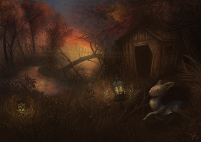 "They said the dead can't come back. But I still can hear him floating through the rooms at night..."Illustration inspired by a myth of Pállfy family crest origin and Red Rock Castle ( or Červený kameň Castle) interior.