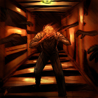 the colouring the hands/arms coming from the ceiling..! The bugs!!