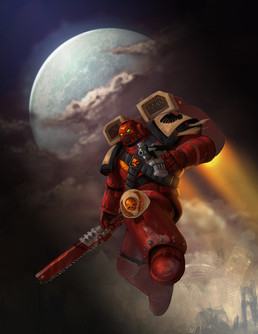 A wonderfully striking picture I have to say of a space wolf on the hunt, I love all the small touches you added into the picture the carving on the armor the necklace the wolf is wearing. If I close my eyes I can almost feel it the cold of the wind the crackled and crunch of the snow the picture is just so striking.
