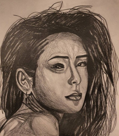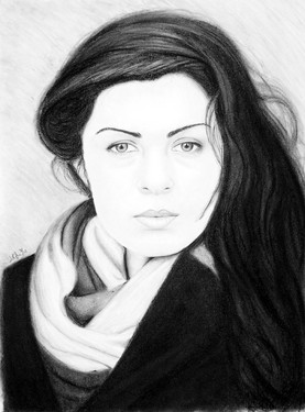 Dibujo a lápiz de María Carrillo con retoque digital.Related content