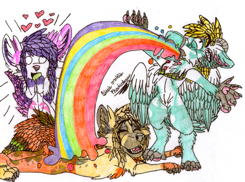 okay, so i was soo proud of this, then i searched "vomit" on the DA search(i know, gross) and SOOO many rainbow barf stuff came up! AUGH. i didn't know it was so overdone! 3!!-feels unoriginal-