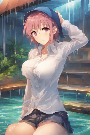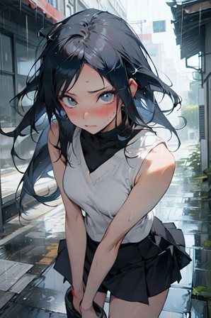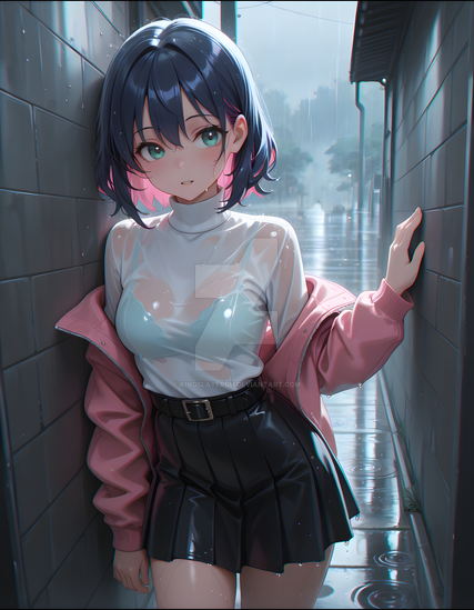 #ai #rain #shirt #smile #translucent #wet #animegirl #beautifulgirl #cuteanimegirl #schooluniform #skirt #wettshirt #transparentclothes