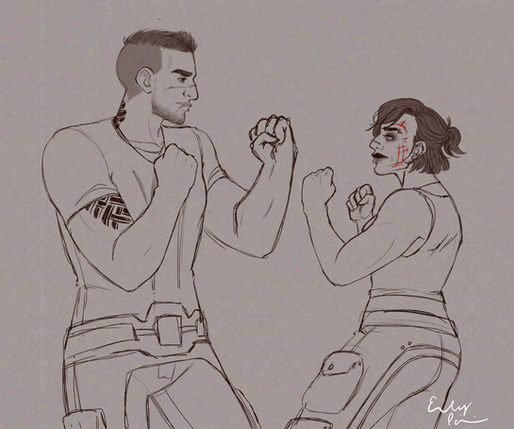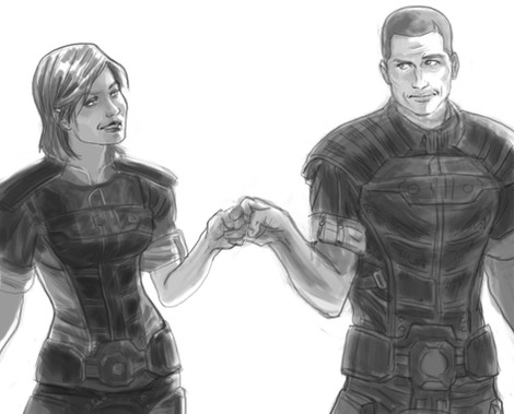 Trying to go for a retro sort of style.Commander Shepard and Kaidan Alenko are property of Bioware.