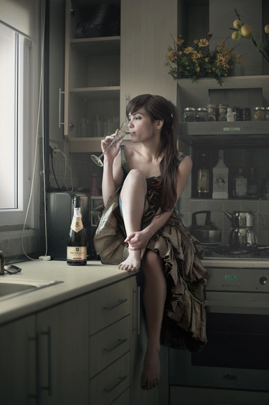 Sitting on the ground and drinking greedily a bottle empty - she must be very exhausted