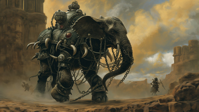 Oliphaunt with a freight-modified harness. I imagine they use working oliphaunts in trading caravans for carrying heavy goods across the vast expanse of Harad.