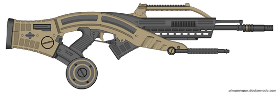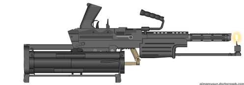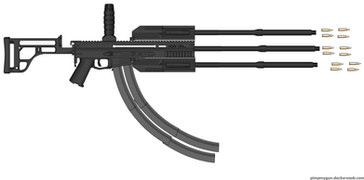 Okay this one is a bit awkward... another batshit design.I call it a "Mini-Machine-Gun" because while being designed to be hard-mounted, it fire a smaller than usual rifle calibre from pivot-action magazine instead of a standard belt.