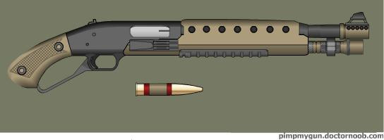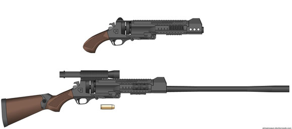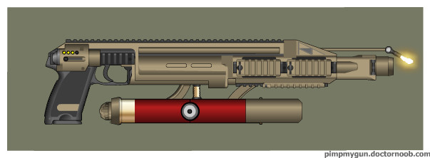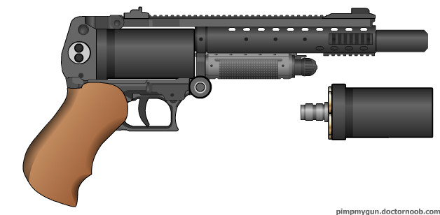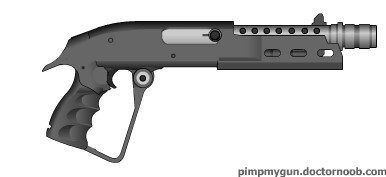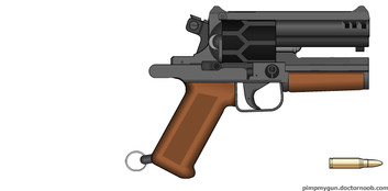 Well at the time I didn't really come up with details as it was just an experiment and as the descriptions hints, I was partially brickfaced at the time. Its not a double barrel unfortunately (sorry) but now that you mentioned a double barrelled 'volver would be amazing to design.