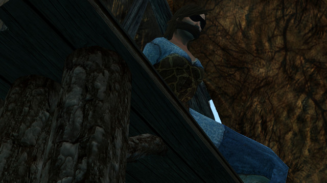 The future Dragonborn reached Riverwood. After sharing her story with Alvor, the local blacksmith, he invited her to his house for a meal. Unfortunately, while they talked she revealed that she could have saved one of the Imperial soldiers but didn't. Alvor flow into a rage since he knew the mentioned soldier. From her on things went downwards for the half-elf. Alvor overpowered her and took her downstairs where she was tied and gagged.When night arrived he Alvor came back and took of the sack off. He could not forgive her. He took her to the local mill that was abandoned at this hour. The half-elf legs were tied behind the saws blade so she could not escape when the log started moving. He then started the machinery.