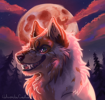 #traditionalart #characterdesign #canine #wolves #bigteeth #fantasy #fluff #nightsky #painting #teeth #wolf #wolfpainting