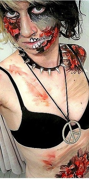 Materials I used; Fake flower, sparkles, liquid latex, MAC Chrome Cakes, Liquid eyeliner.Related content