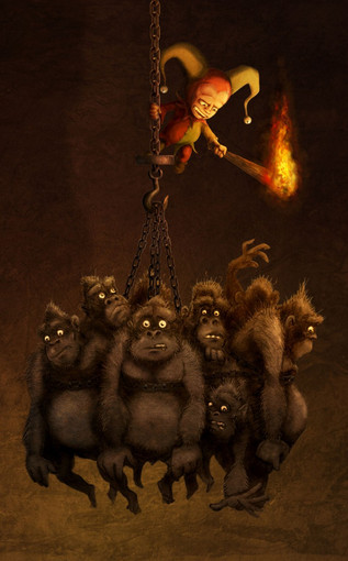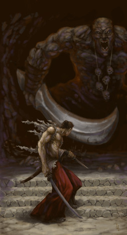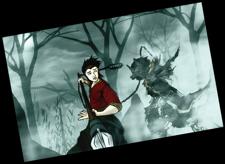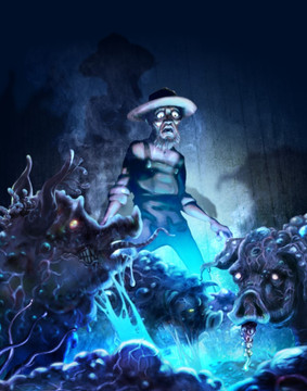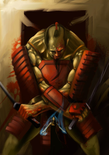 Me encanta la pose del guerrero, su expresión de ira y el entorno fantasmal es genial.