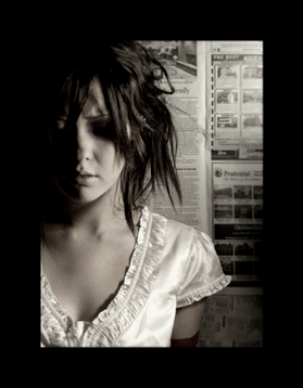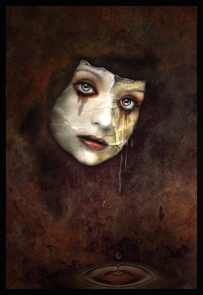 this is great. The sadness the girl puts out makes me feel for her. The texture is wonderful, and I like how it looks to be peeling, kinda like she's peeling away. maybe it's just me Great work!