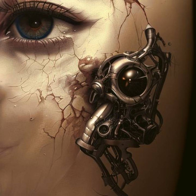 the colors and textures are really good -the cable in her nose..ehhh.. I like how wet the eyes look and the hair juxtaposed against the metal is neat.
