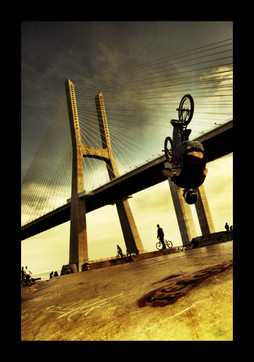 turqoise sky.. interesting.. I don't remember what colour the sky was hehe I like the zig zag pattern and then the linear parallel lines of the bridge to the right.. good stuff