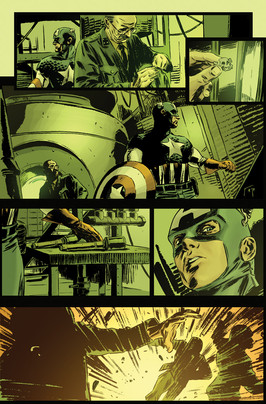 It would make sense if you could see the next page. Cap grabs the lady and takes her away. That's a Nazi's hand in the last panel picking up the cigarette she left behind. The bad guys are tracking Cap and the Lady. But thanks very much for the kind words!
