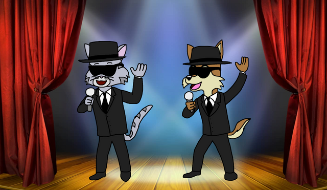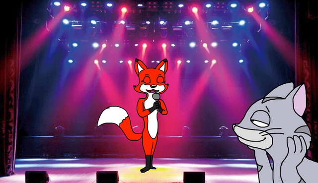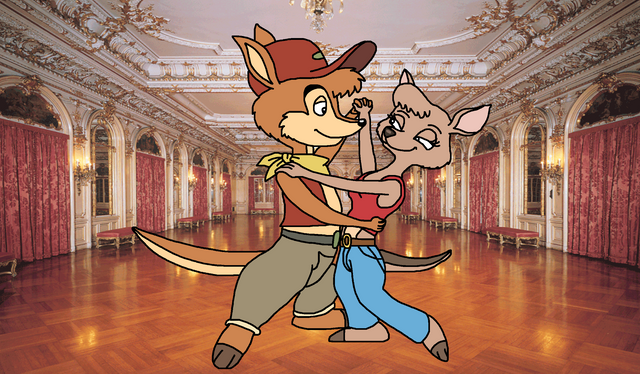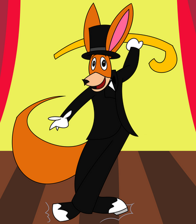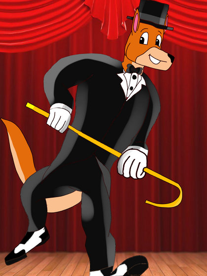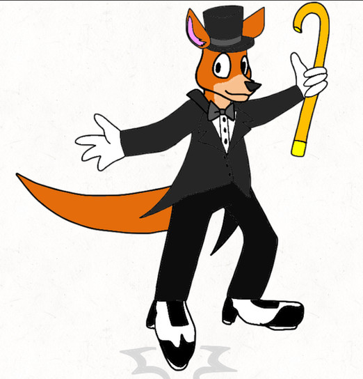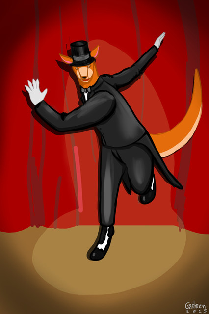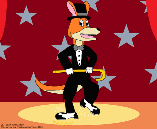My part of an art trade with TheCanadianToony2001 .He asked me to draw his kangaroo OC tap dancing on stage.
