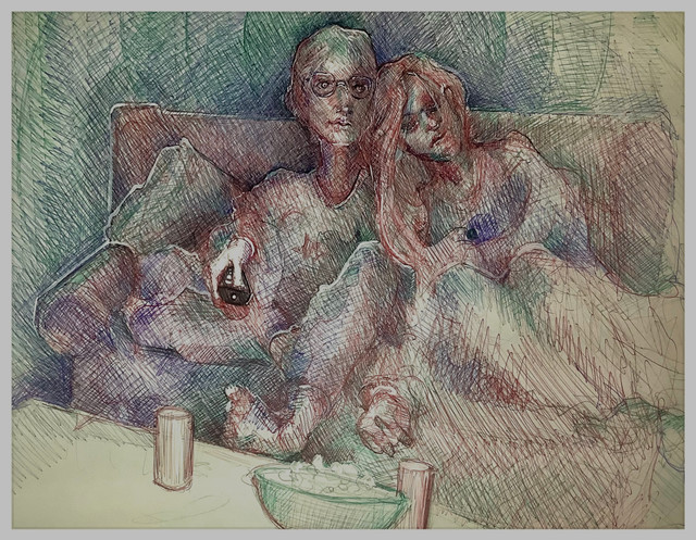 #traditionalart #portrait #cannabis #characterdesign #illustrationart #originalcharacters #acrylicwash #coupledrawing #gelpendrawing #smokingcouple #stonercouple