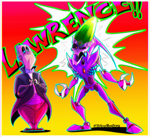 Ohhhhh, I love this so much! You got Nefarious's expression down so well! Look at that adorable screaming face of his!! Poor Lawrence, always having to put up with his shizz XD